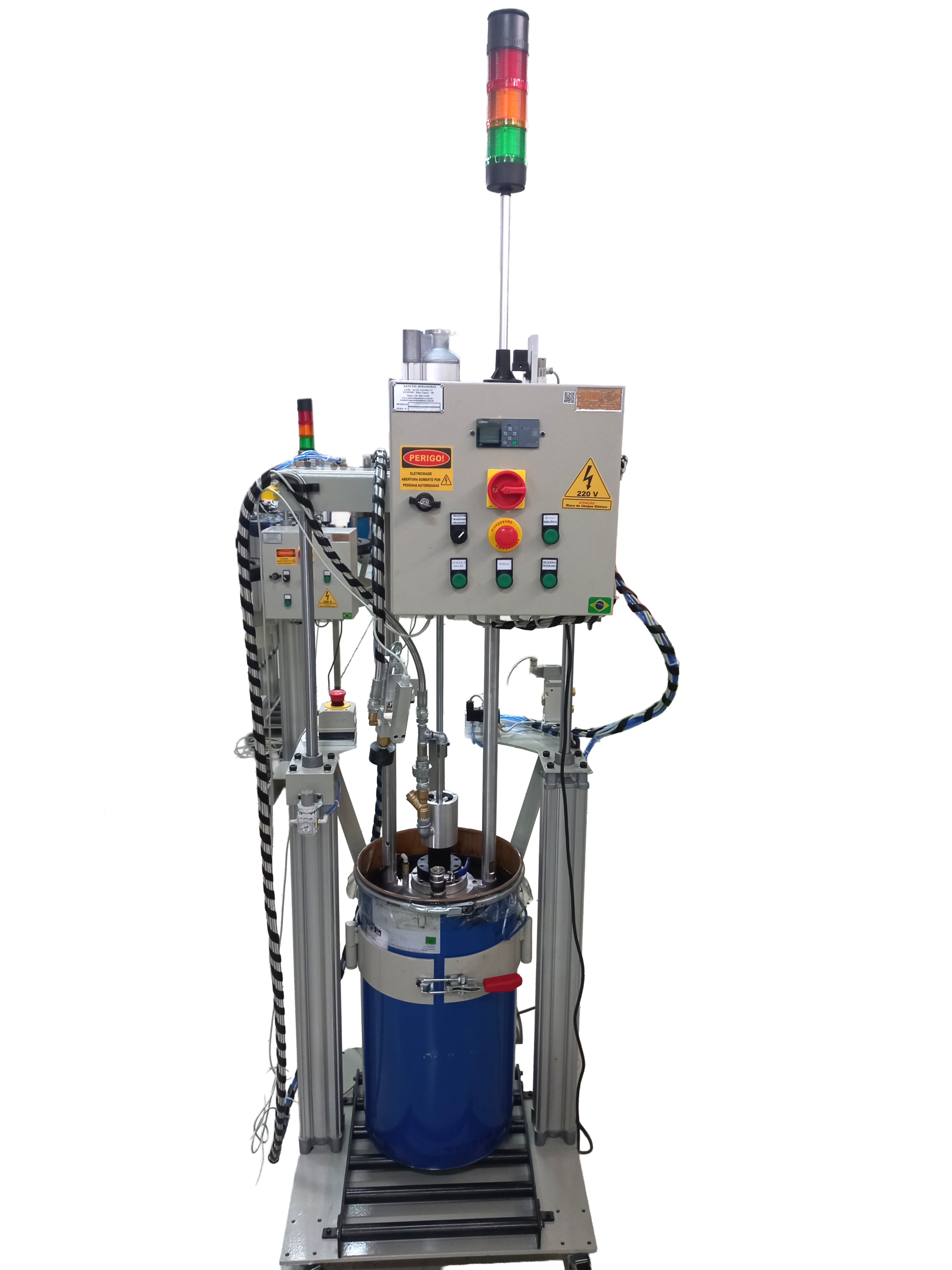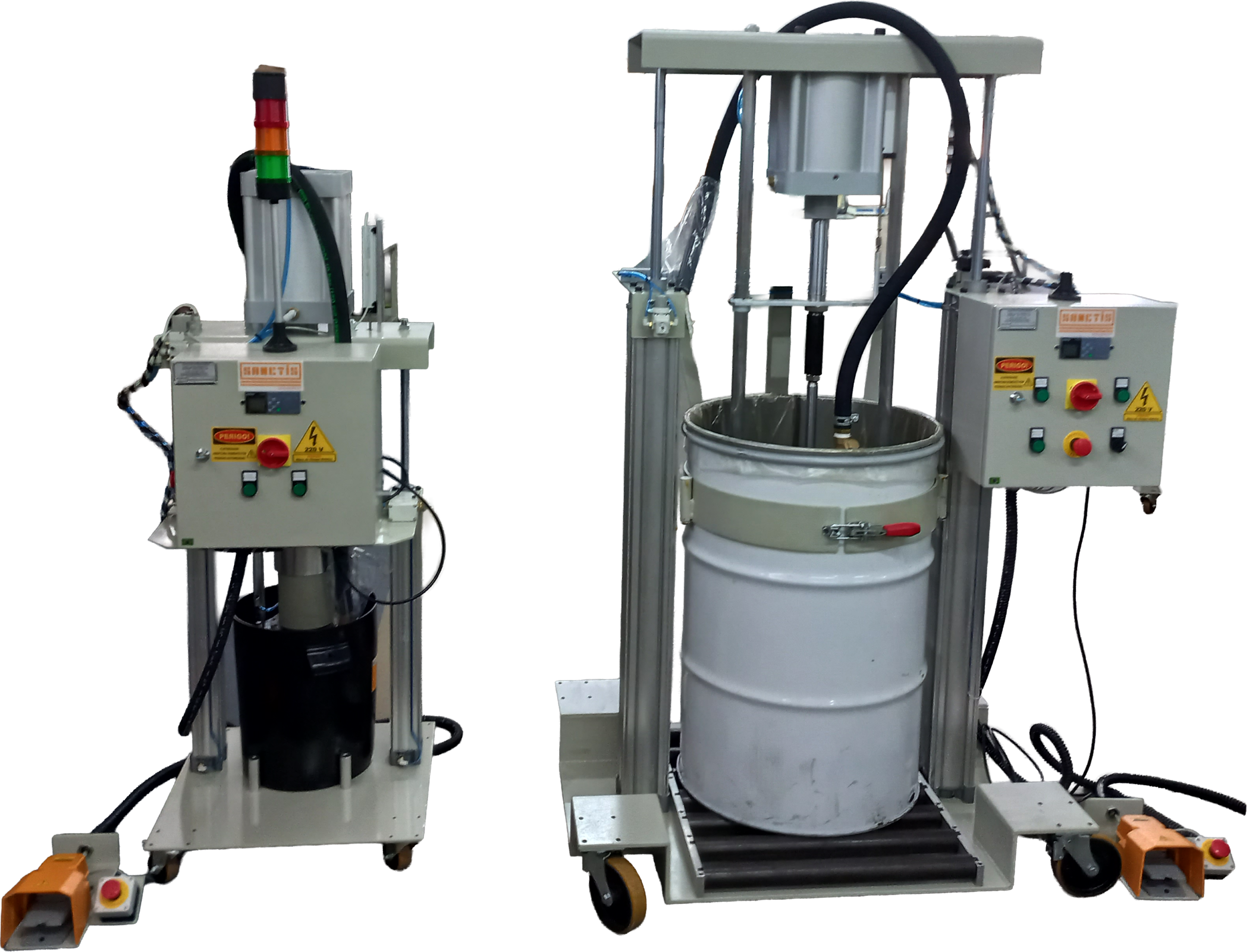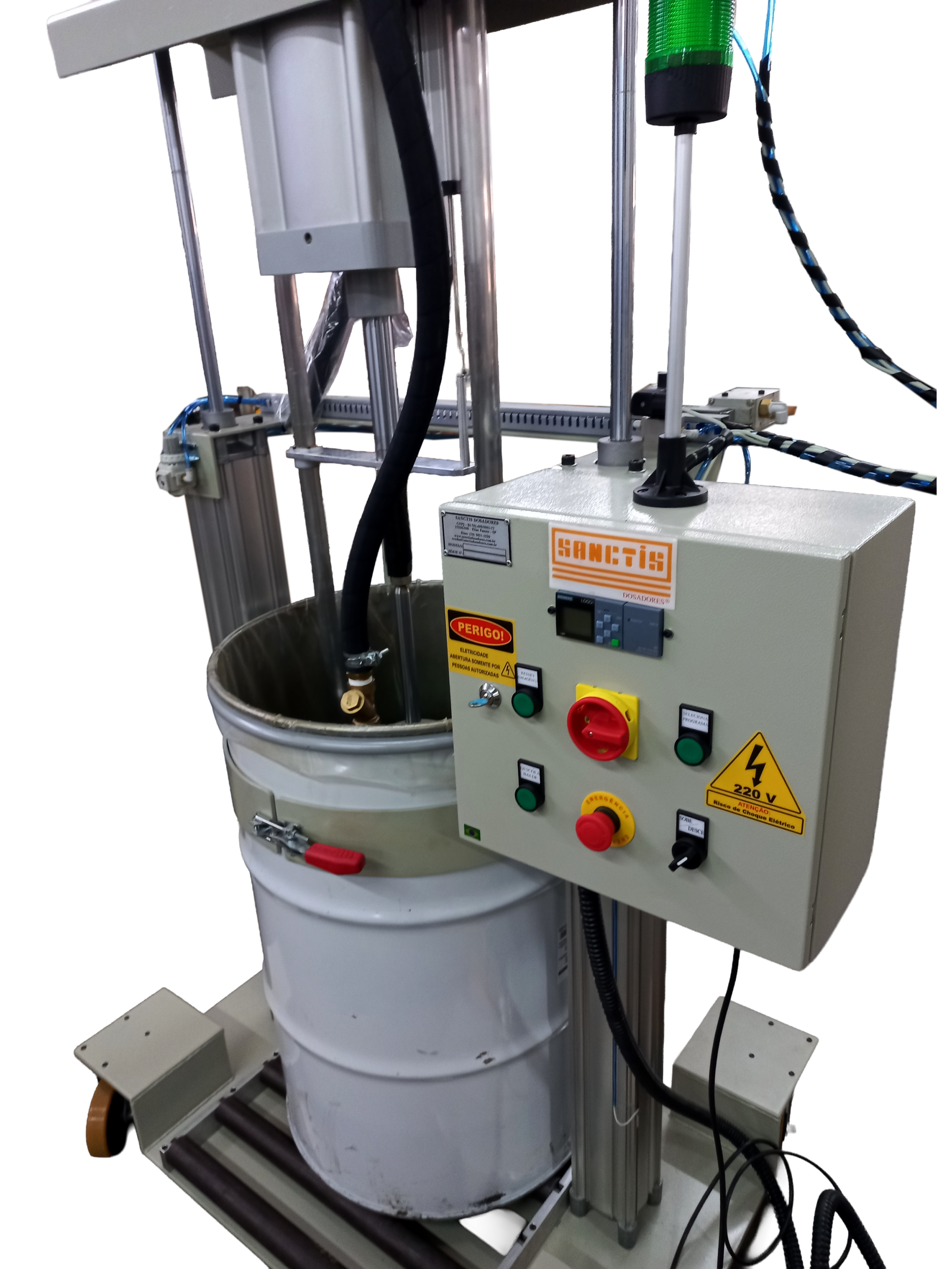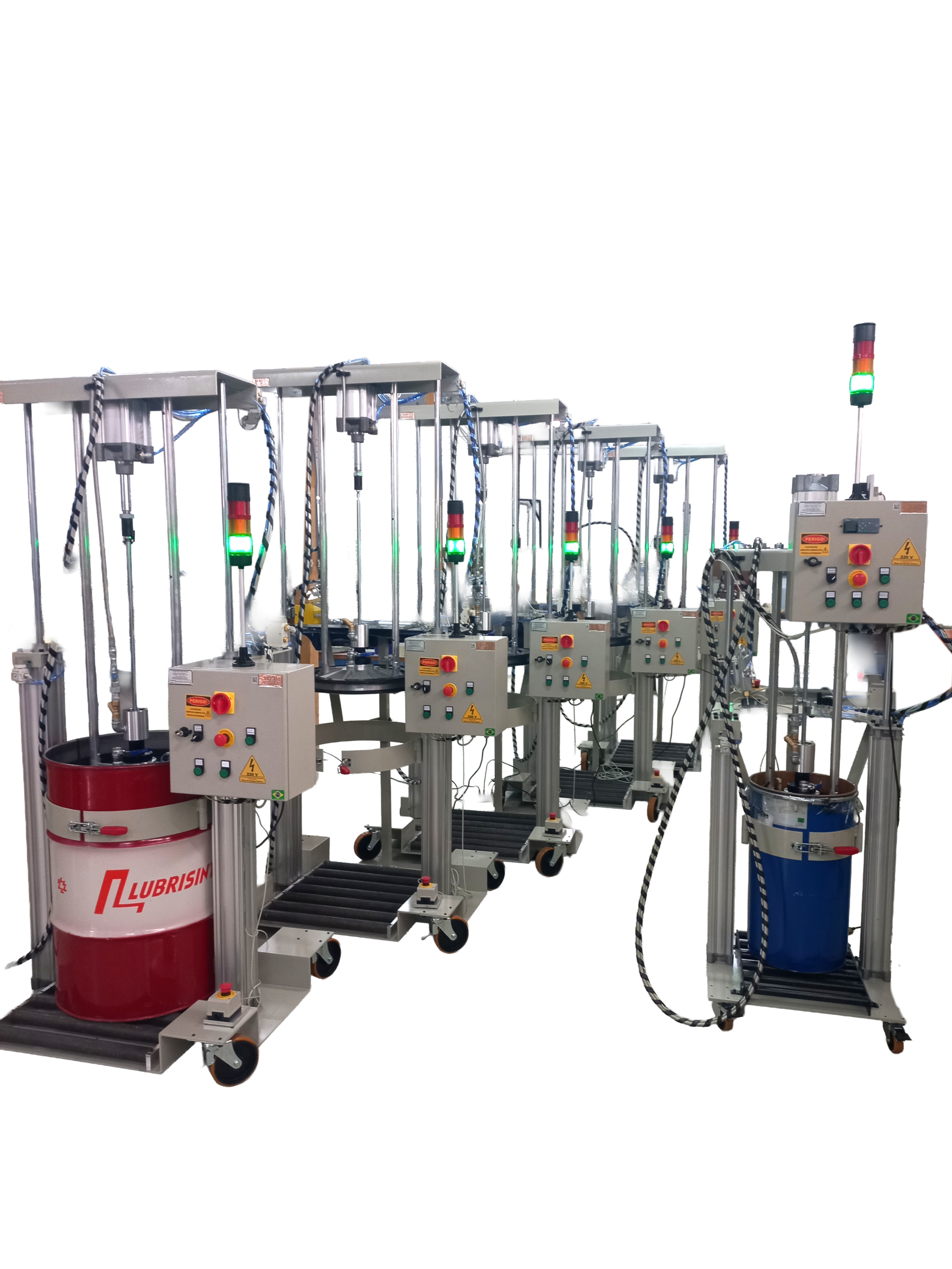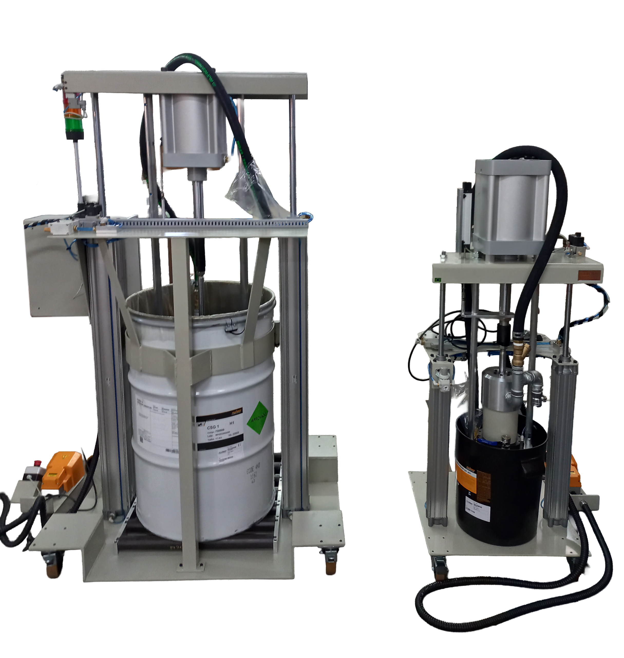 As bombas dosadoras podem operar com baldes 18, 20 e 25 litros, além de tambores de 50, 60, 180 ou 200 litros, conforme o projeto.