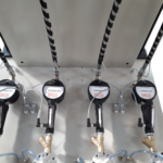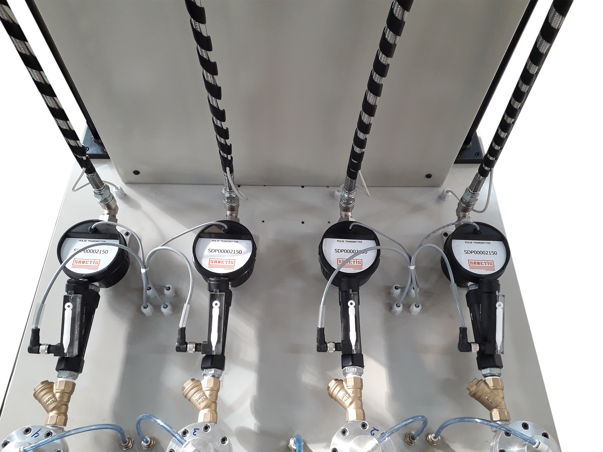 São utilizados sistema de dosagem via bomba de engrenagens ou medidor de vazão.