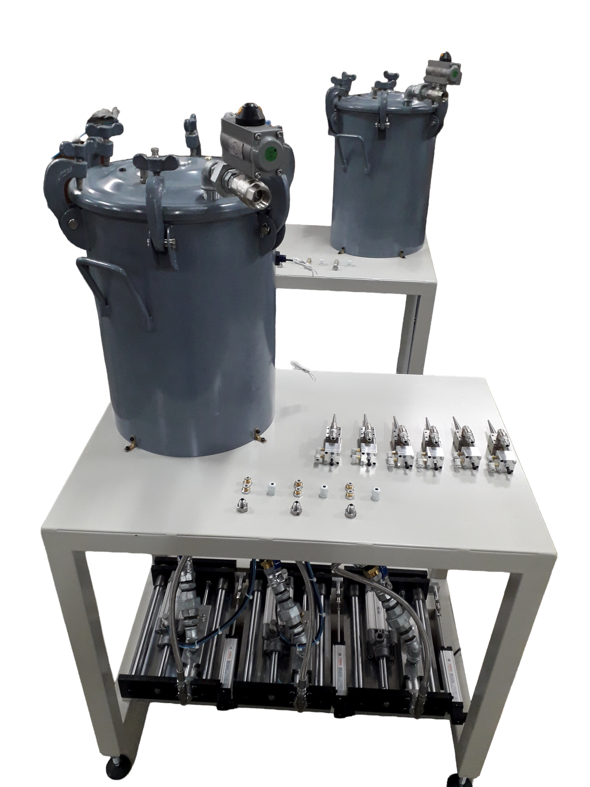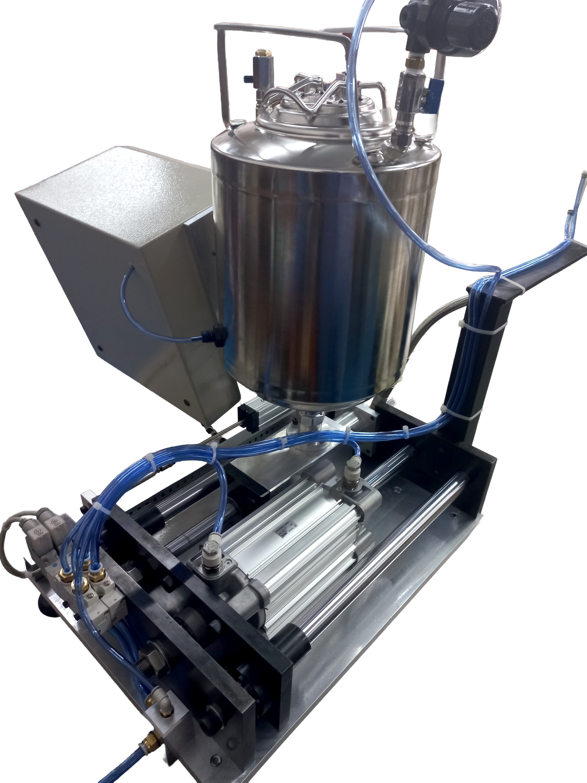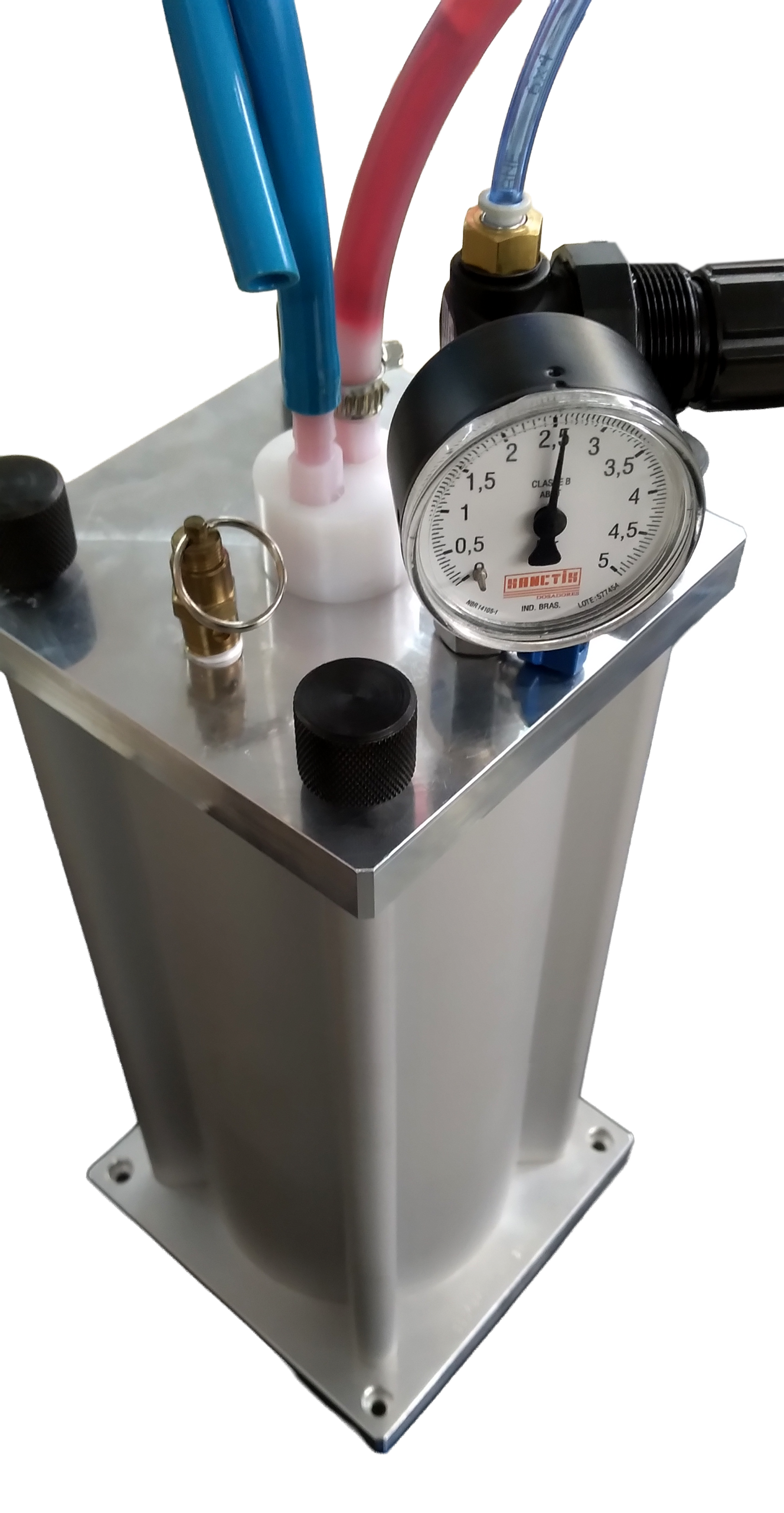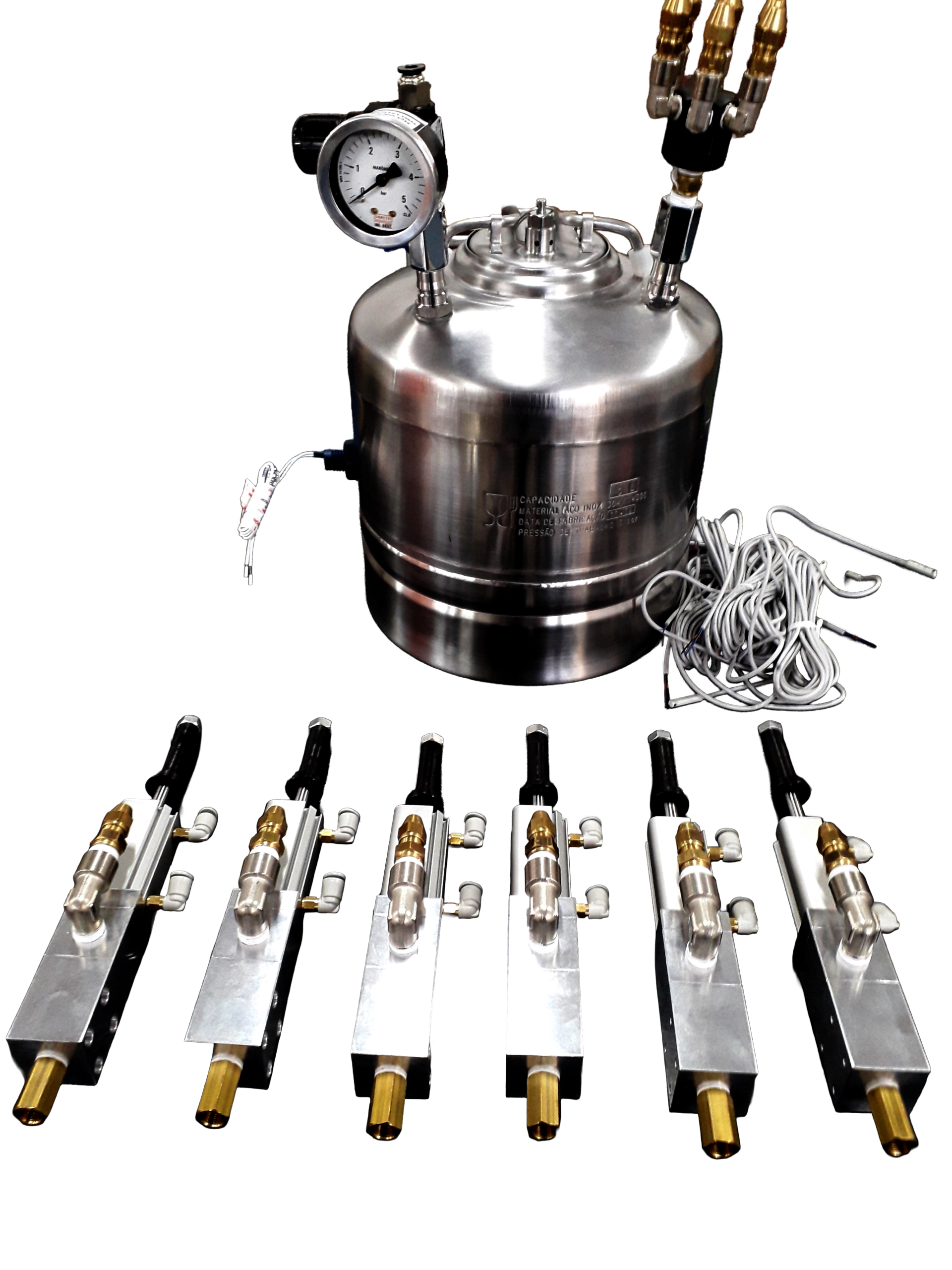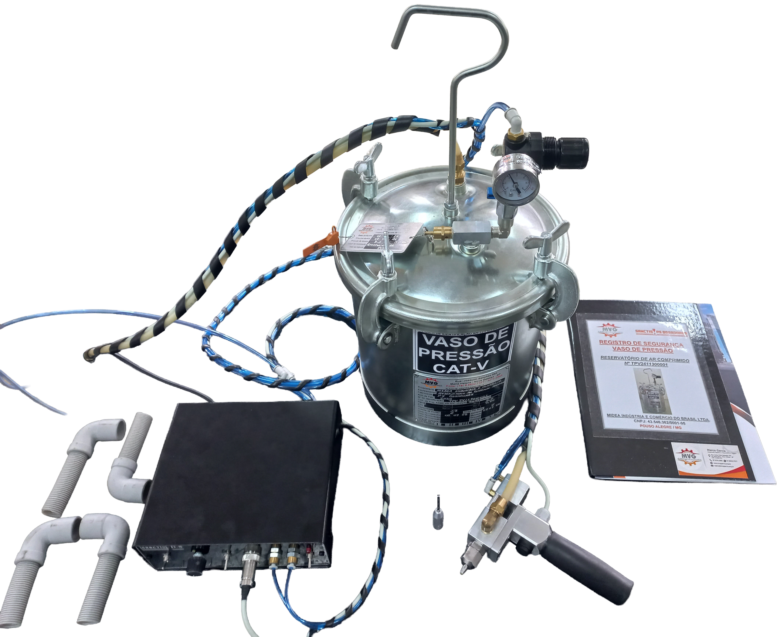 A dosagem pode ser controlada por tempo, pressão ou volume, conforme a necessidade da aplicação